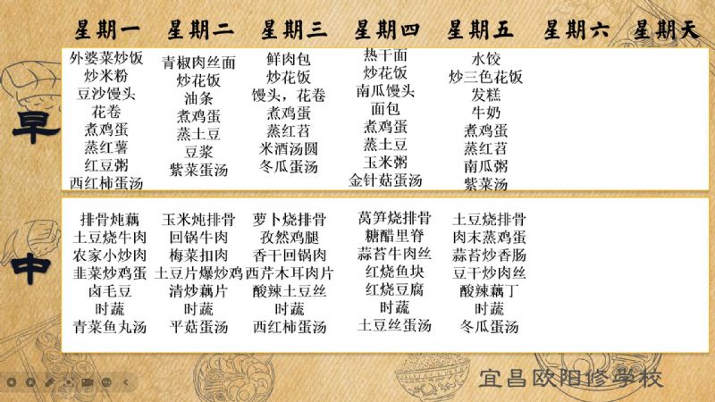 宜昌歐陽(yáng)修學(xué)校每周食譜(12月9日至12月15日)