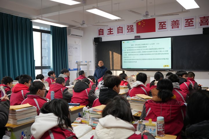 走進(jìn)304班課堂,一堂專注于原電池習(xí)題解析的課程映入眼簾。周老師妙語連珠地引導(dǎo)學(xué)生回顧了原電池的組成及其工作原理,學(xué)生們踴躍發(fā)言,課堂氛圍濃厚。隨后,周老師鼓勵(lì)學(xué)生進(jìn)行小組合作,并邀請(qǐng)小組代表上臺(tái)解析習(xí)題,教室掌聲與笑聲交織,學(xué)生們?cè)谳p松愉快的氛圍中汲取知識(shí)的養(yǎng)分。