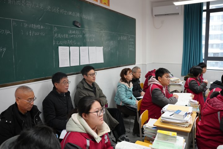 在校領(lǐng)導(dǎo)的陪同下,教研員們走進(jìn)了化學(xué)、語文、數(shù)學(xué)、英語、地理學(xué)科教師的課堂。教研員們深入各學(xué)科課堂,直觀地了解教師的教學(xué)狀態(tài)和學(xué)生的學(xué)習(xí)活動(dòng)。