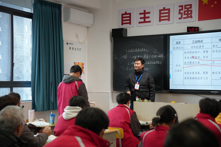 觀摩302班的地理課堂,張老師引領(lǐng)學(xué)生圍繞具體實(shí)例,深入剖析復(fù)雜工業(yè)布局之謎,并系統(tǒng)總結(jié)工業(yè)區(qū)位因素的變遷規(guī)律,以此作為課堂兩大核心議題,拉開了課程的精彩序幕。學(xué)生分為四個(gè)小組,展開了熱烈的討論。討論結(jié)束后,各組代表進(jìn)行發(fā)言。針對(duì)學(xué)生們拋出的種種疑問,張老師逐一深入探討,耐心解答,其解析深入淺出、條理清晰,重難點(diǎn)把握精準(zhǔn),破解巧妙。在這堂課中,張老師以生動(dòng)的語言結(jié)合多媒體資料,有效鞏固學(xué)生知識(shí),提升學(xué)習(xí)效果。
