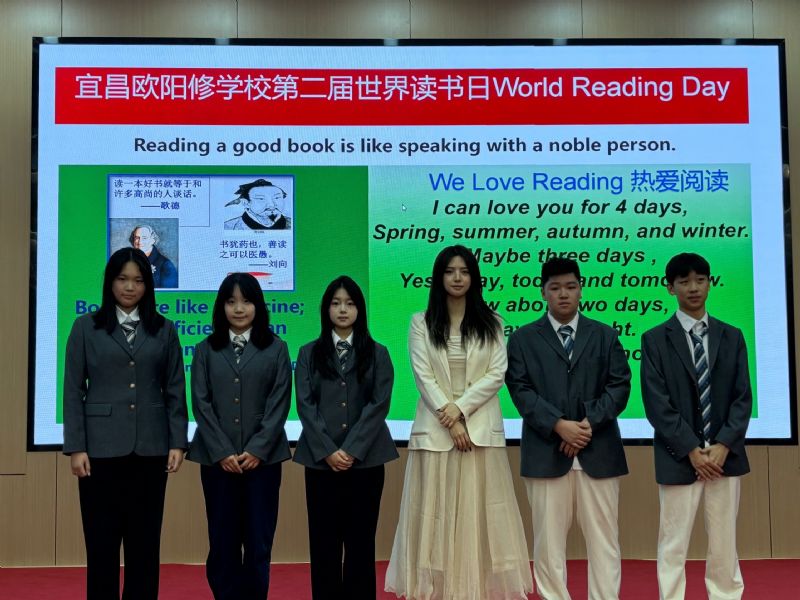 2025年4月23日,宜昌歐陽(yáng)修學(xué)校國(guó)際高中和普通高中高三年級(jí)一起舉辦了“第二屆世界讀書(shū)日活動(dòng)(World Reading Day )”。國(guó)際高中李翠銀主任用中、英文雙語(yǔ)主持本次活動(dòng), 陶三發(fā)校長(zhǎng)發(fā)表了熱情洋溢的講話,雅思專家Helena用標(biāo)準(zhǔn)的英式英語(yǔ)介紹World Reading Day 影響力 。高三年級(jí)全體師生參與了這場(chǎng)與書(shū)香的浪漫邂逅。