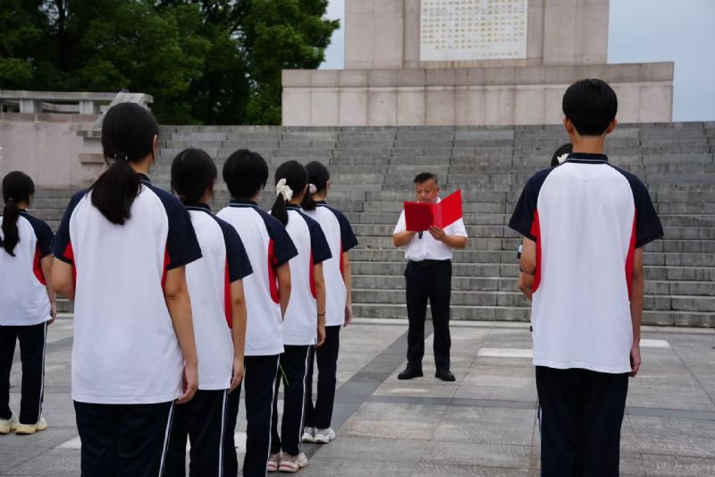歷史無言,精神不朽。為緬懷革命先烈、傳承紅色基因,9 月 18 日上午,宜昌歐陽修學(xué)校組織教師代表 6 人、學(xué)生代表 15 人,前往宜昌市烈士陵園開展了 “9?18” 緬懷先烈主題教育活動,活動由學(xué)校團支部書記焦明超主持。